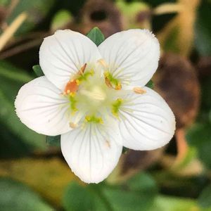2019/9/28 樫原湿原にて ウメバチソウ 開いてたのは1輪のみ。このほか、まだつぼみの株がいくつかありました。 2019/12/8 追記 5本のオシベの花糸が伸び切り、先端にあった花粉がなくなった後の状態。 自家受粉の可能性がなくなった頃合いを見計らい、いよいよ中央のメシベの柱頭が開いてます。 そう気づいてみると、異なる感動がある。😁😁😁