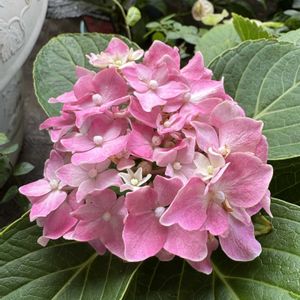 おはようございます☀💦 毎日の強い陽射しで葉っぱがチリチリと焼けてきた紫陽花に花が…… 咲きたかったんだね〜☺️💓
