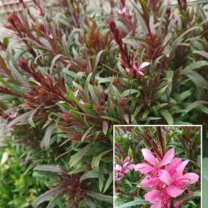 今朝の庭から PW苗 ガウラ リリポップピンクが咲き始めました💖 昨年春お迎えした時より葉は大きくなりましたが 草丈は30センチほどでプランターにも収まりがいいです 濃いピンクのお花に濃い緑の葉 赤みを帯びた新芽も存在感があります 昨年、先を摘んで庭のあちらこちらに挿し穂したら ドンドン増えて何人もの方の庭にお嫁に出しました❣️