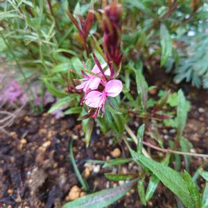 ガウラ リリポップピンク💗 冬の時期に小苗でお迎えしてやっと!可愛いお花が〜😍💗💕ƸӁƷ この子はあまり上には伸びない矮性タイプだからコンパクトで狭い小庭にピッタリ🙆🏻👌✨ うちの青い🦋と白い🦋との競演が楽しみ〜😊💓