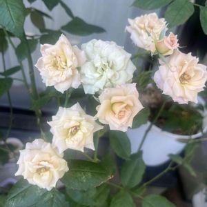 こんにちは😊 アイスバーグのシュートが、根本からポッキン、柵にくくり付けたけど、大丈夫かなぁ😱 バラの銘仙は、早々カット✂️して🏠で楽しんでます🥰