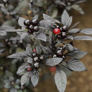 観賞用トウガラシ 黒い真珠の様な実をつける 観賞用🖤🖤 綺麗な色の葉っぱです💜🖤 🏷8日は葉っぱの発表会 参加させて頂きますね。