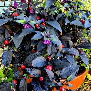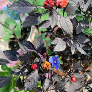 🖤ブラックパール🖤 【黒葉唐辛子】❤ 寄せ植え🌿💠に使っていたブラックパール⚫ ツヤツヤ✨ピカピカで綺麗です🤩 宝石💎のようで、アクセサリーにもなりそう♪((o(´∀`)o)) 段々、赤くなります🔴
