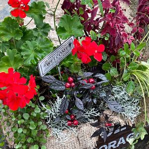 木箱の寄せ植え。 単独植えだったゼラニウム❤️ この鮮やかな赤い色を 加えたくて、リメイクしました。 手前のトウガラシブラックパールと 動きの楽しいプラチーナを足元に。 右後ろには、葉っぱの小さな 赤いコリウスとカレックスを 足してみました。 茶色の木箱には、やはり、 赤いお花がお似合い❤️