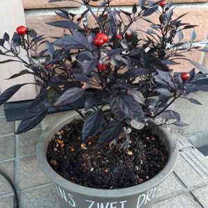 先週、近くで所用があっていつもの園芸屋に寄ったところ一目惚れしてしまったもの。 これで名前がトウガラシとしか書かれてなかったのでどういうこと?とその場で調べてました。😅 1年草みたいなのでしおしおになった赤い実を収穫したら種になるのかな? 楽しみです。