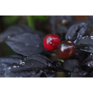 観賞用トウガラシ ブラックパール。 今日のお花 つやつやブラックが紅をさし始めました♪