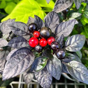 ◆ブラックパール(観賞用トウガラシ) 本来は実の色の変化を観賞するものなのですが 残念ながらまだ小さな実が付き始めたばかりで これからこれから...