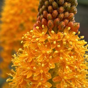冬場、閑散としていた植物園も、急に暖かくなった昨日は、人、人、人と久しぶりに賑わいを取り戻していました🤗💞 ①から③この黄色が鮮やかなお花は💛ブルビネラ フロリブンダ💛と覚えられそうにない名前のお花ですが、花茎を長く伸ばし、小さな可愛らしい花が穂になって、下方から上へと咲き上がっていくお花です🤗💞 一つ一つのお花も可愛いですし、明るく華やかな黄色は、遠くからでも目立っていました🤩