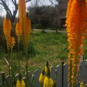 ブルビネラのビタミンカラーのお花がたくさん咲きました💛💛💛 手入れができてないので倒れてしまい。お花はまだまだ円錐状に咲いて行くんですよ〜😁 以前は鉢植えにしていて、増えなくて消えそうになったけど、2年ほど前に地植えして良かったです😄