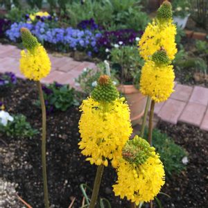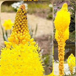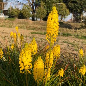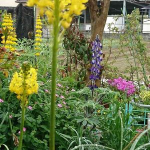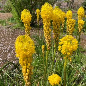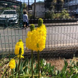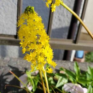 ブルビネラ・イエロー咲き出しました。 小さな花が密集しています。 蟻がいるので、アブラムシが出てきたのかも?