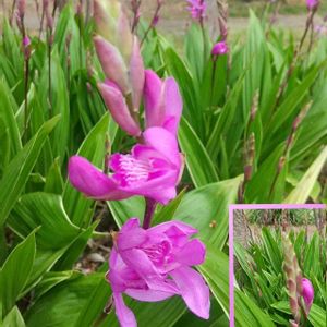 4/16 (土) ☁️ 💗🌿紫蘭🌿💗 シラン(紫蘭) 学名❀✿Bletilla striata 英名❀✿urn orchid 和名❀✿紫蘭 ※ラン科 ※シラン属 原産地🔷日本、中国 駅前公園花壇にて撮影📸📱💕