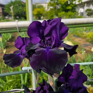 ジャーマンアイリス 濃紫 2025-18 TB 昨年から畑の外れで開花しています!品種はサッパリ分かりませんが、遠目で見ると黒に見えるくらい濃い紫色の花ですね!