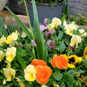 🧡💛🤍🧡🩷💛🤍💛🩷 雪に埋もれていたビオラさん達ᕙ( • ‿ • )ᕗ いつのまにかチューリップも真ん中からニョキニョキ仲間入り😄