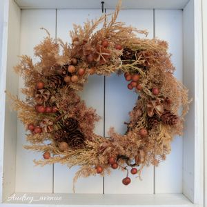 こんにちは☀️☁️ 昨日、伸びすぎたユーカリを2メータくらい切りました🪚 せっかくなので、リースを作りました♡ 春先にドライフラワーにしたミモザと、昨年のナンキンハゼの実と拾った木の実✨ 台にしたのは、以前作ったアケビのツルです✂︎ 子育ての合間、ひとときの楽しみです♪
