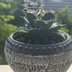 おはようございます☀ 今朝も快晴、今日も暑くなりそうです✨ アガベ編✨④ こちらはセリ会で落札しました サルミアナ アンガスティフォリアさん💚 どなたも声をあげなかったので お安く購入することができました😆 抜き苗でしたので鉢に植えて 根づいてきたら駐車場後ろの 水路脇に鉢ごと植え込み 外管理する予定です🤗