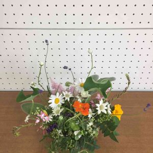 庭から摘んできたモナルダ、ヒペリカム、ラムズイヤーでミニブーケ♫ いい香り♡