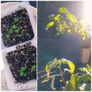 ミックスハーブの種まきと こぼれ種のしそのポット上げと ふさふさバジル