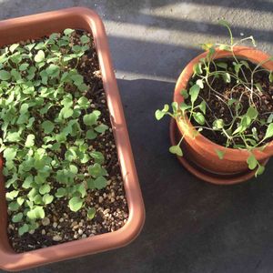 左が外放置、右室内の暖かい、風通しの良い場所で育てたルッコラ。外放置の方がものすごく逞しい✨