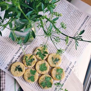 『イタリアンパセリのチーズクッキー』 花が咲く直前まで育てたのは初めてです🍀 ワインに合うクッキーを焼いてみました