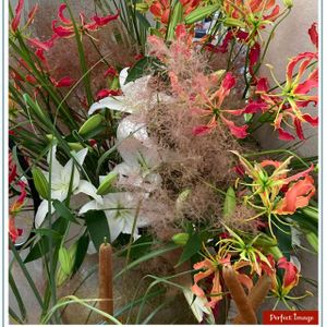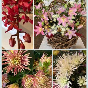 仕事で市役所に行った時に飾られていました😊菊の華やかさと赤い蘭が綺麗でした💕