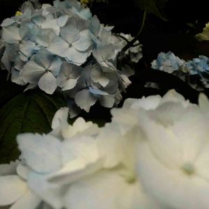 惑星と衛星のようにたゆたう紫陽花と仕事中の庭師。