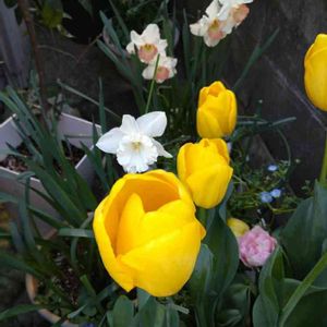 チューリップと水仙💖小さく見えるピンクもチューリップの八重咲きでした💖🥰😽