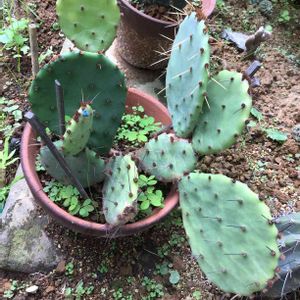 草取りしたいなーと思いつつサボ見てたら花壇外に団扇サボテンの実生が雑草と一緒に生い茂ってる🌱 いつ種が飛んだんだろう🤔