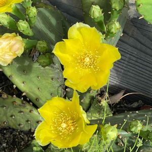 真っ黄色の花が咲きました。 知り合いから頂いた団扇サボテン。 沢山、花が咲きそうです。💕