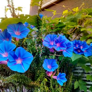 朝の散歩道🚶♀️ご近所散歩🚶♂️ 通り道のお宅の垣根に、 綺麗な朝顔が咲いていました。