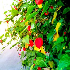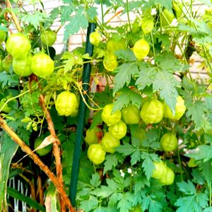 朝の散歩道🚶♀️ご近所散歩🚶♂️ 通り道のお宅の垣根に、 フウセンカズラが、沢山ぶら下がっていました。