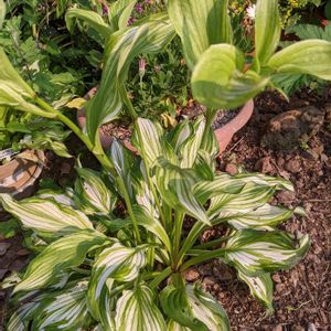 ギボウシ。カタツムリさんに食べられながらの、成長です。🐌🐌🐌🐌🐌🐌😭