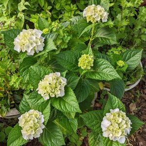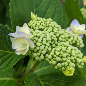 紫陽花、緑から白色に変化してきました。シックな紫陽花。