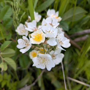 自宅前に バラの花が 野性のバラですか? わすれなぐささんに イノバラと 教えて頂きました🙏