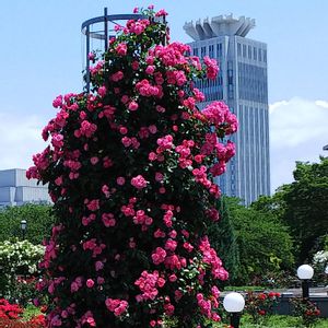 夕暮れ時の ヴェルニー公園 昨秋は、台風の影響で チリチリだったバラ🌹 それを取り戻すかのように、 ふんわりきれいに咲いていました😊🎶