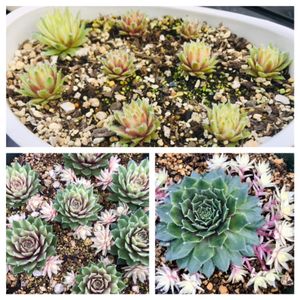 センベルヴィブム 「バニラシフォン」 以前の画像で恐縮ですが 2020年•••親株 2021年•••子株 2022年•••孫株 いずれもランナーの小さいこを 植え付けたもの。親株は⭐︎さんに なりました!💦 今年は頑張って、次年に繋げたい💪🎶