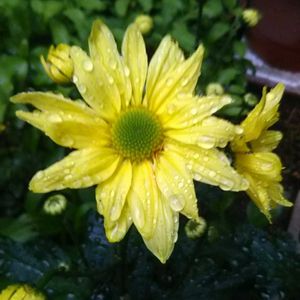 おはようございます😃 早咲き(6月咲き)のキクが 昨日、雨の中咲き始めました😊 6月咲きなのに早くも5月に❗️ もうすぐアジサイとのコラボが見れそうです☺️ 早咲きのキクは、花が終わりカット✂️すれば 秋にまた咲くという二度咲きだと お迎えしてから知りました😅 今から楽しみです😊