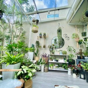 先程のpicを引きで撮ってみました゚+.*♡*.+゚ 窓枠の高さに合わせて作ってくれた棚もあるので、外管理の観葉植物ももう少し置けそう( ̄∇ ̄*)ニヤリン♪ そろそろお外組の置き場所を確保しなくちゃ💦💦