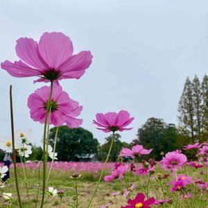 今日の散歩ついでのコスモス畑。 薄曇りでも花はキレイだぁ(≧∇≦*)
