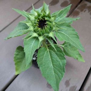 もう咲きそうなミニヒマワリ🌻 背丈は小さいけど立派な予感✨(*>∀<*)