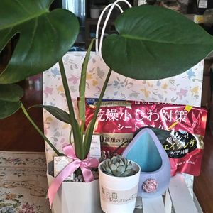 今日はレオのママさんとランチに出かけました😋🍴💕 ①レオのママさんから誕プレいただいちゃいました🎁 大きいモンステラちゃん、かおりんさんのリメ鉢、葉挿しから育てた多肉ちゃん、フェイスマスク、アイシャドー…たくさん嬉しいです(⁎ᴗ͈ˬᴗ͈⁎) ②すみれ牡丹×花うららꕤ.。 ③1ヶ月分のフェイスマスク&DHCのアイシャドー、自分では買うことがなかったので、ありがたいです🙏 ④今日の日替わりランチは鶏の唐揚げでした🐔 唐揚げ4個、キャベツの千切り、トマト、お刺身、スパサラ、ご飯、味噌汁、つけもの、メロン&オレンジ サクッサクッの唐揚げ、シンプルにマヨで食べるキャベツの千切り、美味しかった(*´ч`*) ⑤デザートのミルクレープとアイスコーヒー𖠚ᐝ レオのママさん、ありがとうございました(❁ᴗ͈ˬᴗ͈)