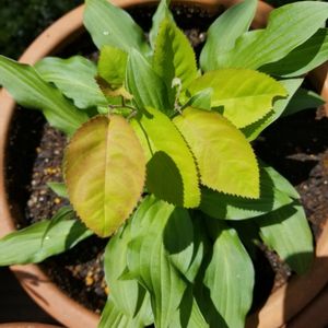 去年、どこからともなく飛んできて、勝手にバラ鉢に実生しました。 ひとつはギボウシ。もう一つはなんの木? 気になるので掘りあげて育ててみよう♪ 我が家にはもう一つ勝手に実生した木がもう一本。それはとりあえず放置します。