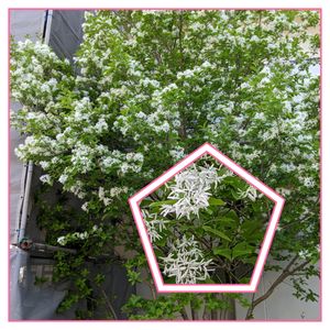 こんばんわ ♫この木なんの木気になる気になる〜♪ 職場の大きな木なのですが 何の木なのかわかりません💦 毎年気になってます。 ヒトツバタゴと言うそうでさっそく教えて頂きましたー ありがとうございました