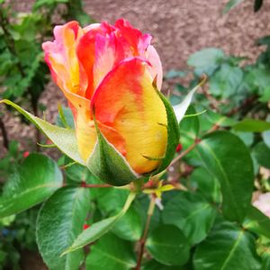 本日の コルデス・ジュビリー 急に暑くなったせいか 蕾から 赤く濃いオレンジ に縁どりがピンクが入って エキゾチックな 色合いに✨❇️ エキゾチック~🎶 ジャパ~ン➰🎶