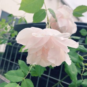 新苗のマダム・アルフレッド・キャリエールを植え替えしました 1番上の蕾もいずれ切らなければなりません😫 ベランダの非常用避難ハッチがあって、撮影時だけここに置きました 後ろはナエマです🌹 良い写真が撮れたらアップしたいと思っています😊