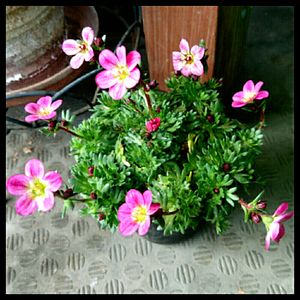 リュービンタイ。😁⤴ やっと鉢が決まり、植え替えしました。(笑) 根元にはオキナ苔を配置。😍 意外と可愛くなったかな。