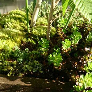 コナラの樹の根元には、セダムサルサヴェルデ、ブレビフォリウム、反対側にはオキナ苔を配置してみました。😁🎵