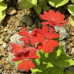 カラフトエンビセンノウ 朱色で目立ちます 花弁がナデシコみたいなセンノウです 昨年山野草のお店で見かけてお迎えしたものです 今年も無事に咲かせることが出来ました! 昨年の開花は5/26だったので今年は早いです