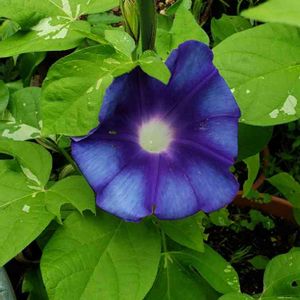 妹に苗を分けて貰った大輪朝顔✨ 変わった花が咲いたのでパシャリ📷 その数分後に見に戻ったら花が半分くらいヨトウムシに食べられてました😱 毎日虫との戦いです💧💨