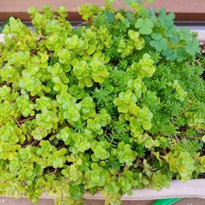 今年何度目かもうわからないほどの植物たちの避難を昼前に終えました。 大阪はまだ晴れています☀️ 雑草のように丈夫と言われる植物も枯らす我が家で、一年中元気で繁殖力も旺盛なセダムです🍀 タイトゴメとセットだったのを買い、寄せ植えしていましたが、タイトゴメさんは負けてしまいました。 もうほとんど姿が見えません。 こうなったら庭中マルバマンネングサだらけにしてやりたいです‼️ 大きな被害なく台風が通り過ぎますように🙏