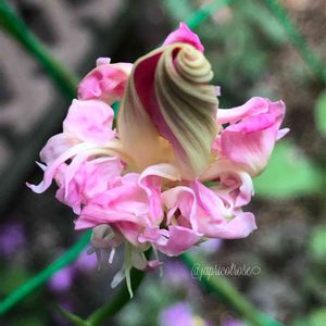 朝顔 ダブルスプリットペタル・ピンクの 美味しそうな蕾、撮れました😋 いちごソフトクリームではありません🍓🍦🤣 開くと昨日のpicのようになります♪